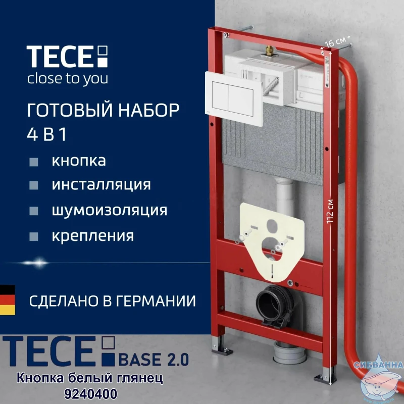 Комплектация: 9400001 Застенный модуль (h = 1120 мм) 9380007 Комплект для крепления модуля 9240400 Панель смыва TECEnow с двумя клавишами, белая 9200010 Прокладка звукоизоляционная