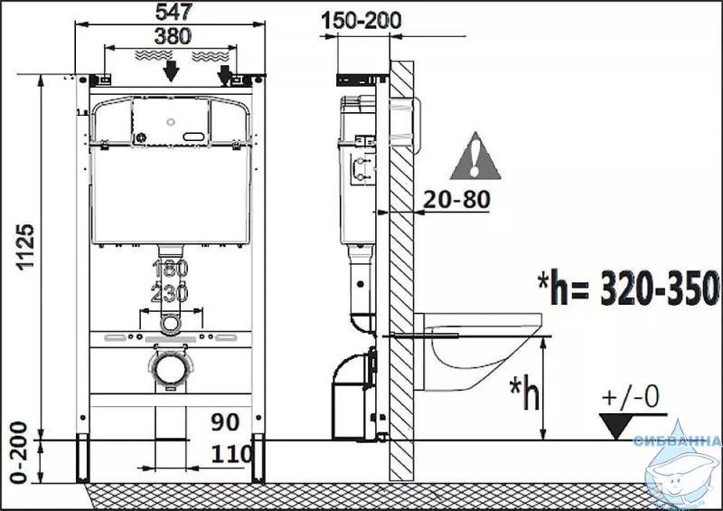 Инсталляция с мощной стальной рамой обеспечивает надежность и долговечность всего комплекта. Бачок с шумоизоляцией минимизирует уровень шума до 30 dВА, а изоляция от конденсационной влаги защищает от образования лишней влаги и плесени. Сливной механизм, оснащенный силиконовым запорным кольцом, гарантирует надежность на протяжении 200.000 циклов. По умолчанию смыв настроен на 6 и 3 литра.