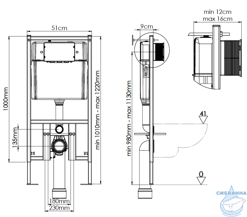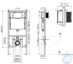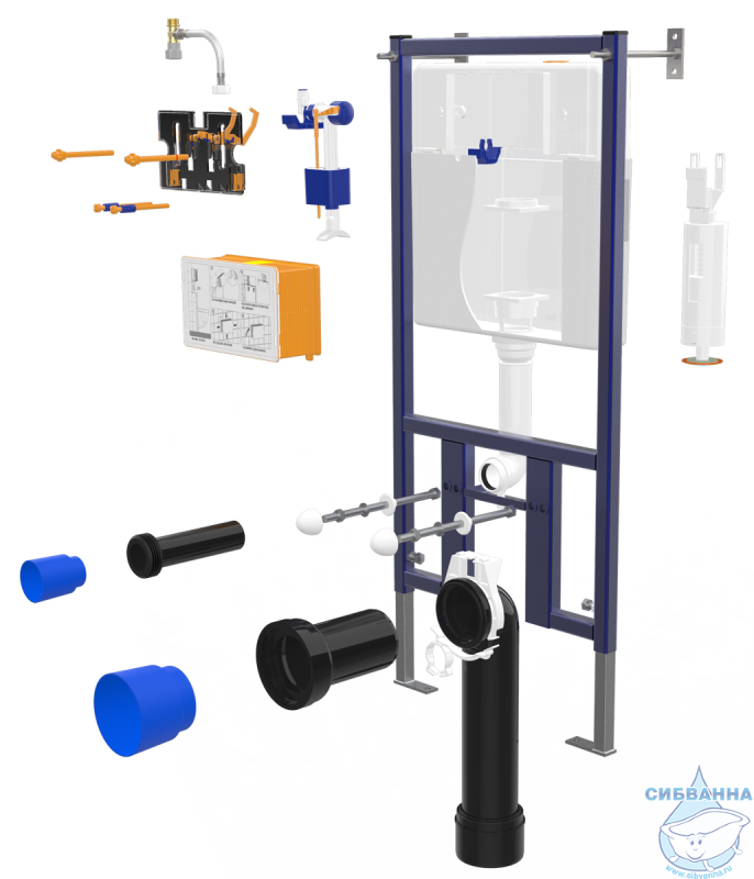 В комплект поставки входит металлическая рама, скрытый резервуар (кнопочный узел поставляется отдельно). • Двойная система смыва обеспечивает эффективное потребление воды. • Толщина стены от 12 см до 18 см. • Прямоугольная конструкционная стальная рама с покрытием может выдерживать нагрузку до 400 кг. • Ударопрочный бак для длительного использования. • Изоляционная прокладка для бесшумного наполнения водой и предотвращения образования конденсата.