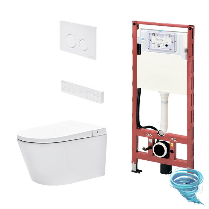 Комплект с застенным модулем, панелью смыва и подвесным унитазом-биде TECEspring Smart L