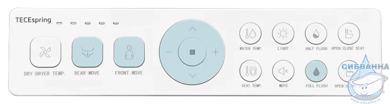 TECEspring Smart L имеет несколько входов получения информации: пульт, кнопки на чаше унитаза, панель смыва и датчики. Большая часть функций управляется с помощью пульта, часть продублирована кнопками, а смыв можно осуществить вручную через панель смыва. Кроме того, TECEspring Smart L реагирует на появление человека включением подогрева сиденья, подсветки и дисплея, а также поднятием крышки. Движением ноги можно также поднять сиденье. После того как пользователь ушел, крышка и сиденье опускаются автоматически.