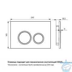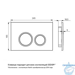 • Клавиша смыва IDDIS® прослужит дольше благодаря прочному и износостойкому пластику и надежному креплению рамки на шурупы.