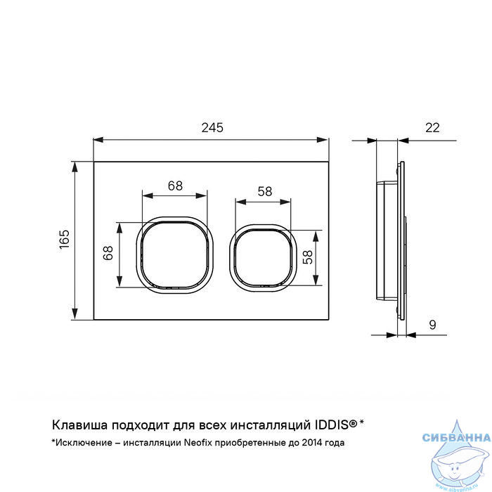 Хромированная клавиша IDDIS® Unifix составит базовый комплект с подвесной сантехникой – подходит ко всем инсталляциям IDDIS®, кроме инсталляции Neofix в модификации, продававшейся до 2014 года (см. на фото). Хромированный контур квадратных кнопок выступает ярким акцентом, превращая функциональный продукт в стильный аксессуар. Плоская и эстетичная клавиша смыва легко монтируется и снимается для удобного доступа к крану открытия-закрытия воды и обслуживания арматуры. Данная модель представлена в нескольких цветовых сочетаниях.