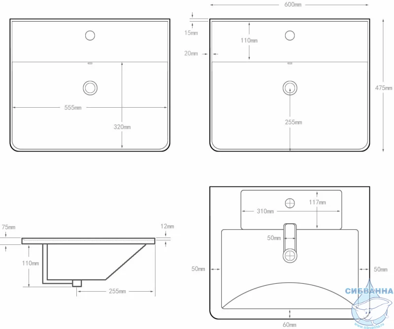 Мебельная раковина Aquanet Aquanet Ирис 60 00301803
