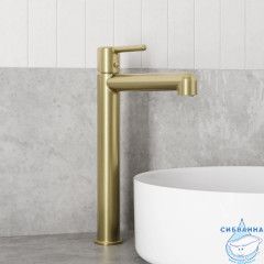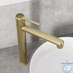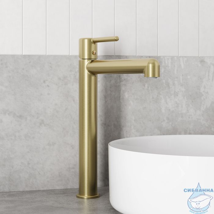 Стильный высокий смеситель для настольного умывальника удачно сочетает актуальный современный дизайн и новый трендовый оттенок матового золота с брашированным покрытием. Тонкая удлиненная ручка добавляет смесителю изящества и комфорт в управлении. Расстояние между ручкой и изливом увеличено для большего удобства.