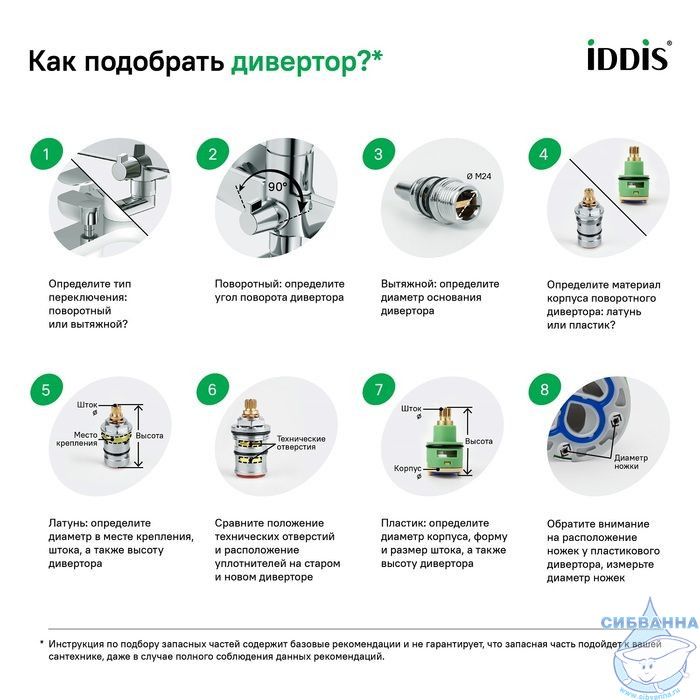 Поворотный дивертор IDDIS® позволяет сделать водные процедуры ощутимо комфортнее: надежно и плавно переключая поток воды даже при минимальном давлении в трубах. Дивертор подходит для комплектации новых или замены изношенных элементов смесителей. • Дивертор IDDIS® прослужит долго благодаря высокому качеству его механизмов: бесперебойную работу продукта обеспечивают пластины, изготовленные из износостойкой керамики. IDDIS® ценит время и ресурсы, затрачиваемые на ремонт, поэтому берет часть забот на себя. Используя глубокую экспертизу российского и зарубежных рынков, IDDIS® стремится сделать каждый клиентский опыт положительным. Накопленные экспертные знания помогают бренду IDDIS® создавать комплектующие к смесителям, подготовленные к российским условиям эксплуатации. Все запчасти к смесителям IDDIS® проходят многоступенчатый контроль качества, превосходящий требования большинства существующих стандартов. • Гарантия на аксессуары к смесителям IDDIS® – 3 года.