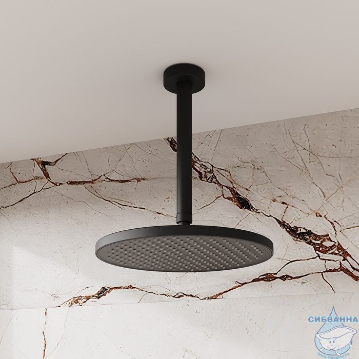 Черная матовая круглая верхняя лейка для тропического душа Esper станет отличным дополнением для встраиваемой душевой системы или заменит надоевшую лейку душевого гарнитура. За счет большого диаметра 256 мм лейка создает объемный поток воды, достаточный для комфортного принятия душа. Подходит ко всем кронштейнам со стандартным резьбовым соединением G 1/2”.