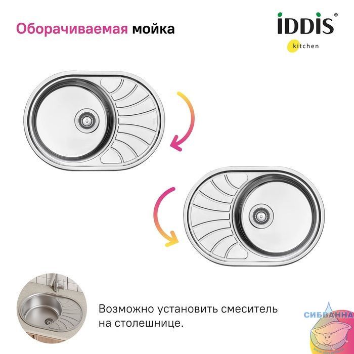 • Монтаж максимально удобен и универсален: мойка устанавливается сверху в столешницу крылом налево или направо.
