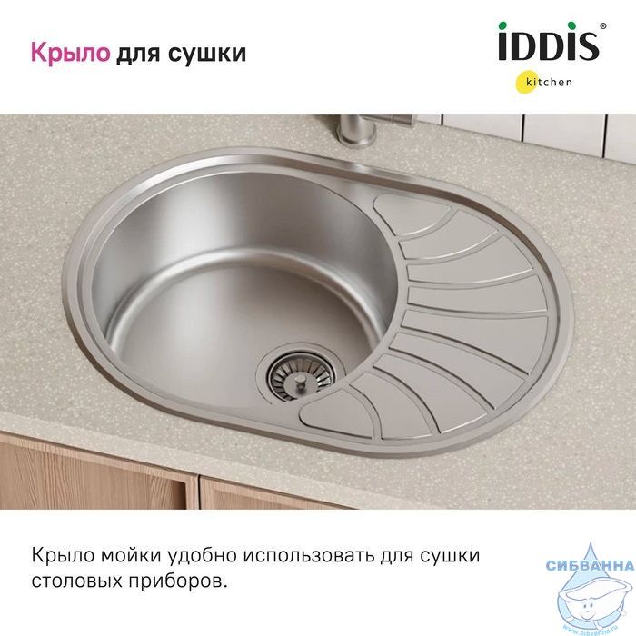 Мойка Suno для тех, кто предпочитает классику: округлые очертания чаши и эстетичный веерообразный узор крыла. Отлично подойдет для небольших кухонь, где на счету каждый рабочий сантиметр. На крыле удобно сушить столовые приборы. Имеет текстуру с эффектом шелковой поверхности благодаря специальной обработке стали.