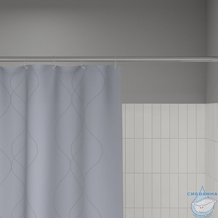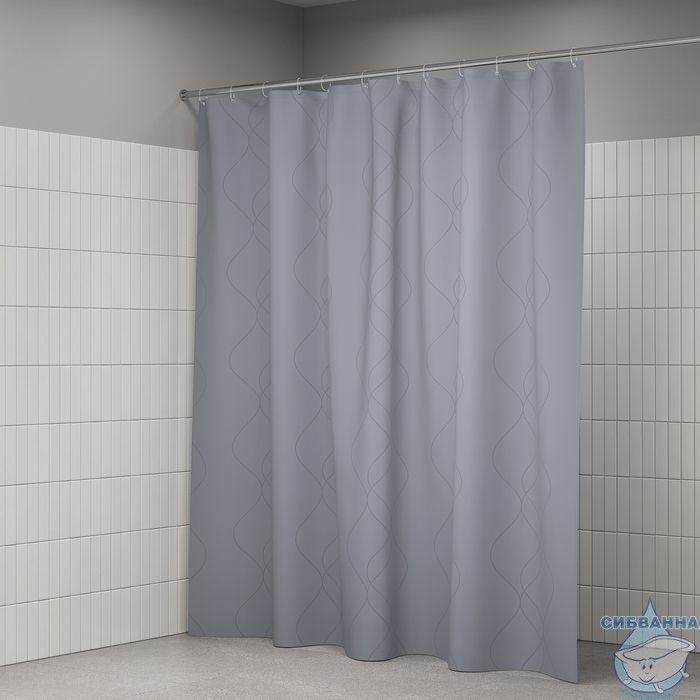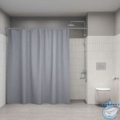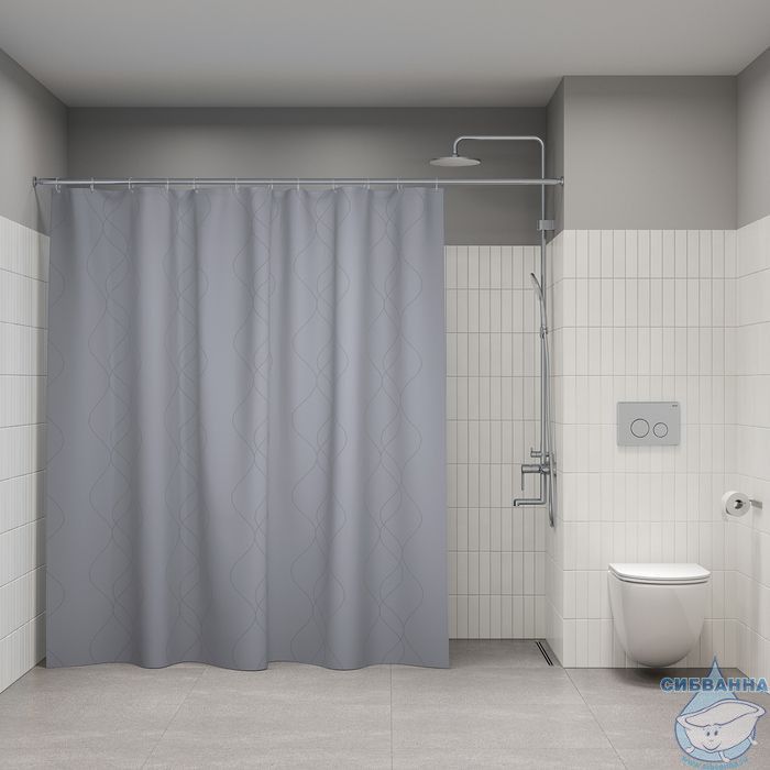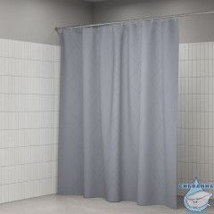 Текстильная штора для ванной серого оттенка с тонким узором выглядит изысканно и стильно и подойдет к интерьеру в любом стиле.