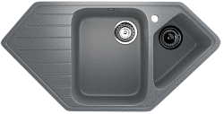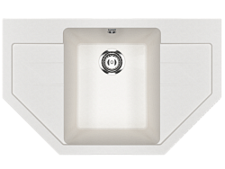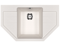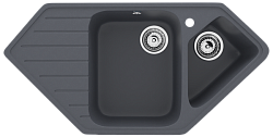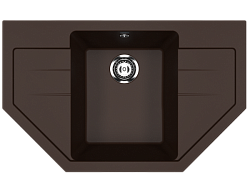 ULGRAN U-409 – двухсекционная угловая кухонная мойка с отверстием под смеситель, с основной чашей и коландером. В комплектацию входят: сливная арматура с гофротрубой, технический паспорт и гарантийный талон. Существует возможность установки дозатора ULGRAN слева от смесителя – доп.отверстие в таком случае потребитель делает самостоятельно с помощью фрезы Форстнера (не входит в комплектацию и приобретается отдельно). Заводская гарантия составляет 4 года, а срок службы данной мойки, при соблюдении основных правил ухода за ней, составляет более 10 лет.