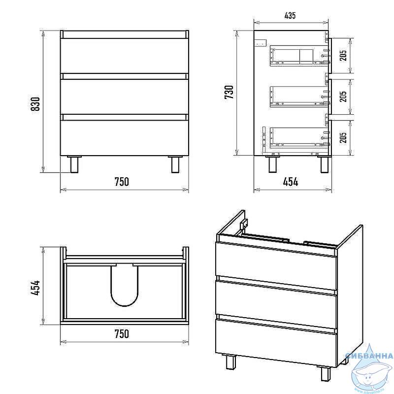 - Размер мебели, мм (ш/г/в): 750x454x730