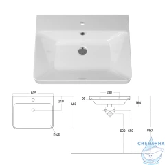 - Размер раковины, мм (ш/г/в): 605x460x160