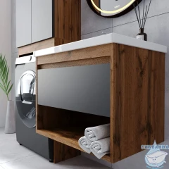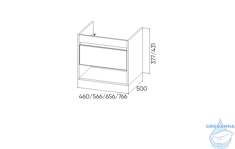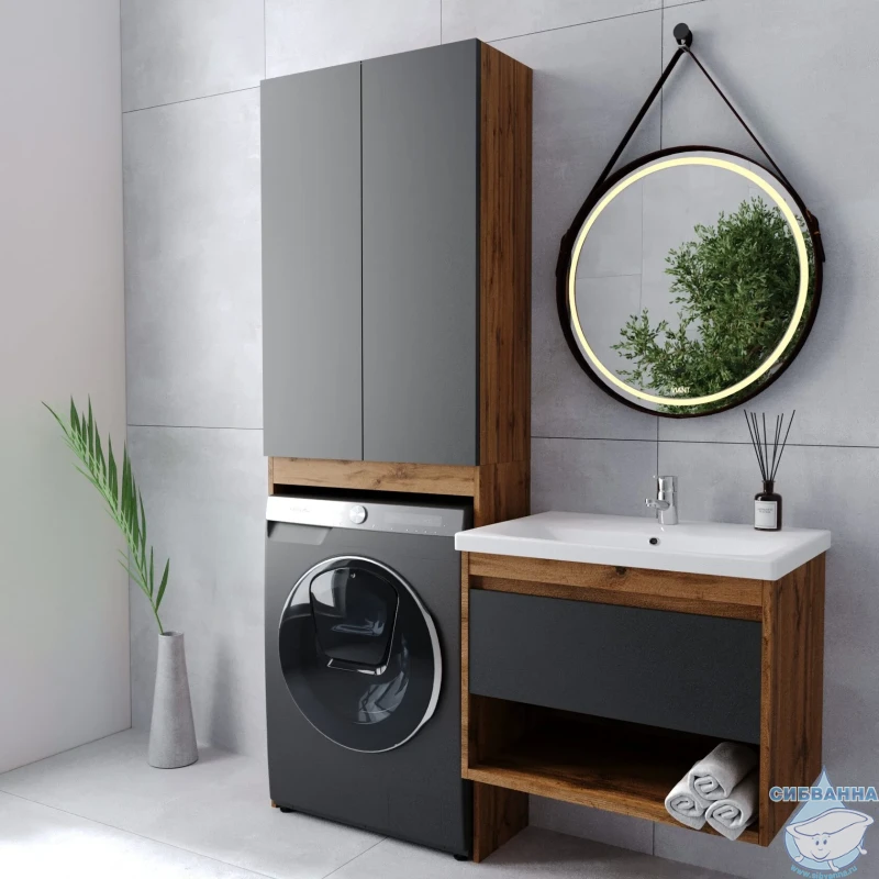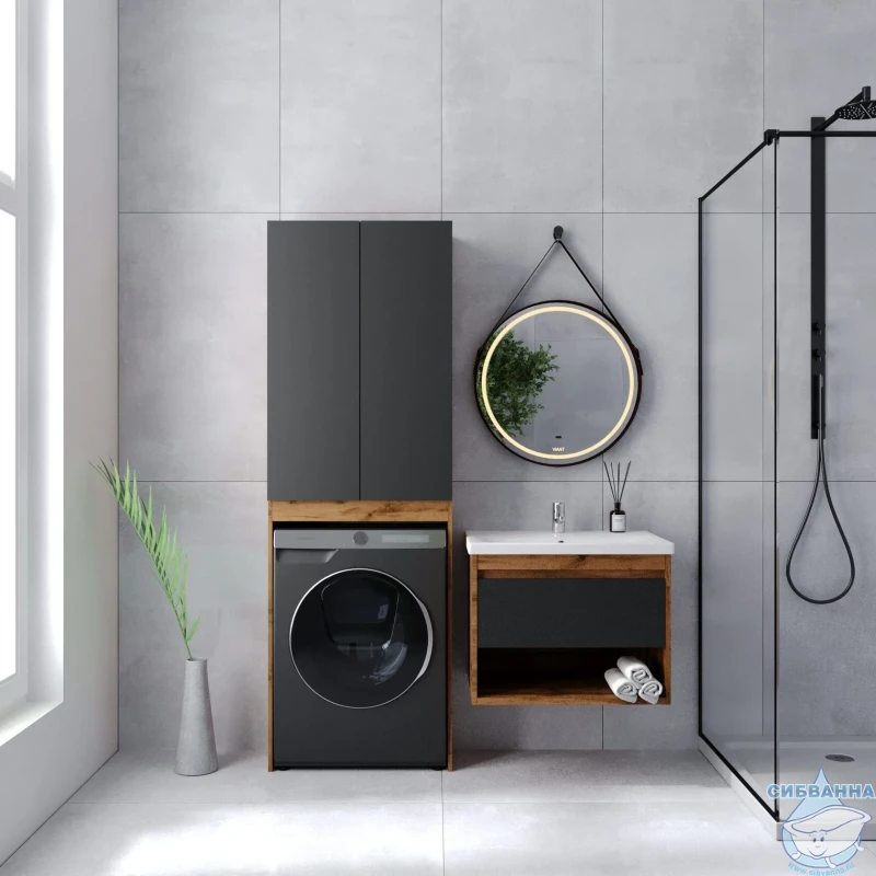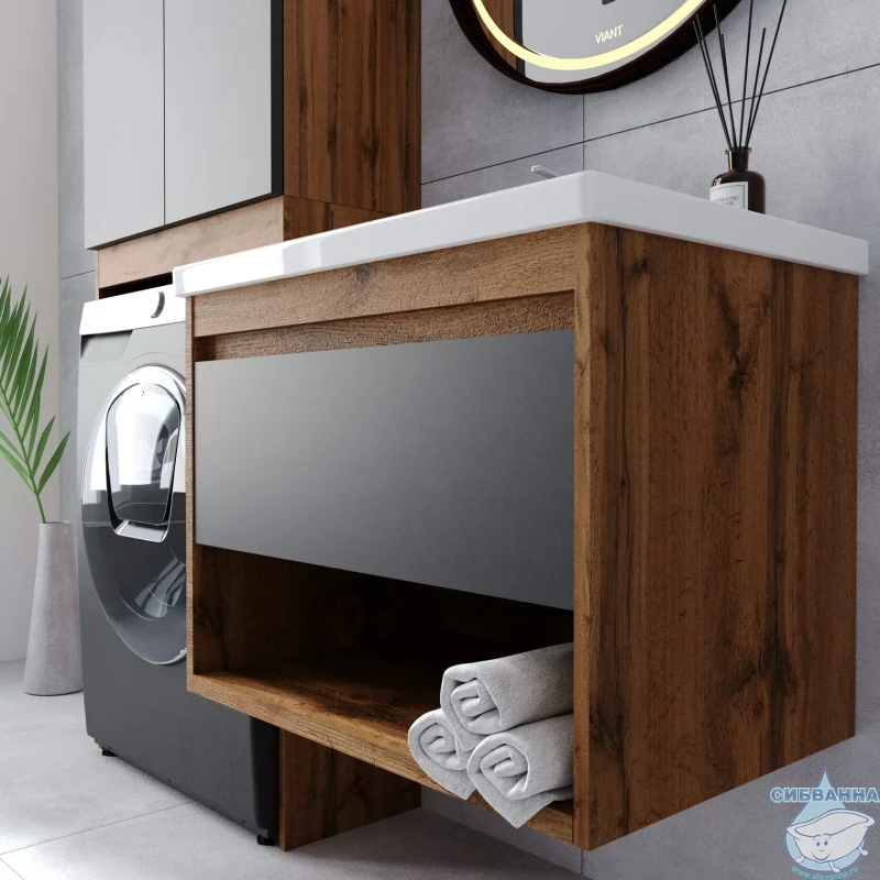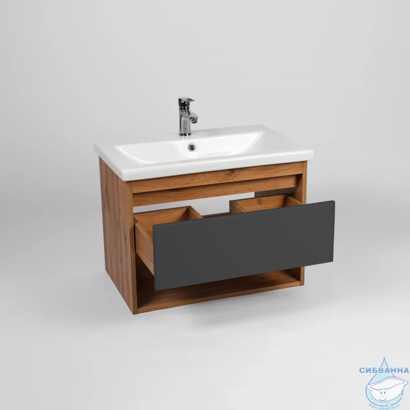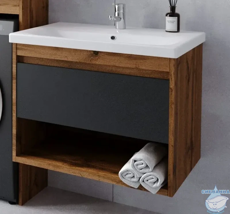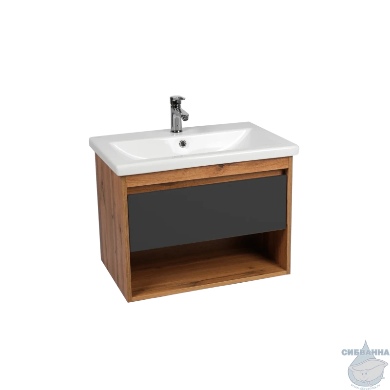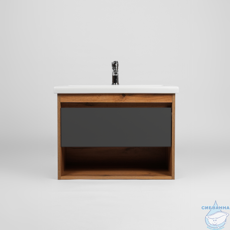 Тумба Viant Бостон 60П с раковиной Como 60 дуб вотан/графит
