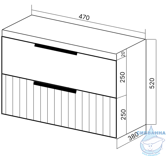 Тумба СИЦИЛИЯ 50, подвесная, 2 ящ., белая (под раковину COMO 50, MODUO 50), VIANT. Комплектация: корпус 1 шт., крепления к стене 2 шт.