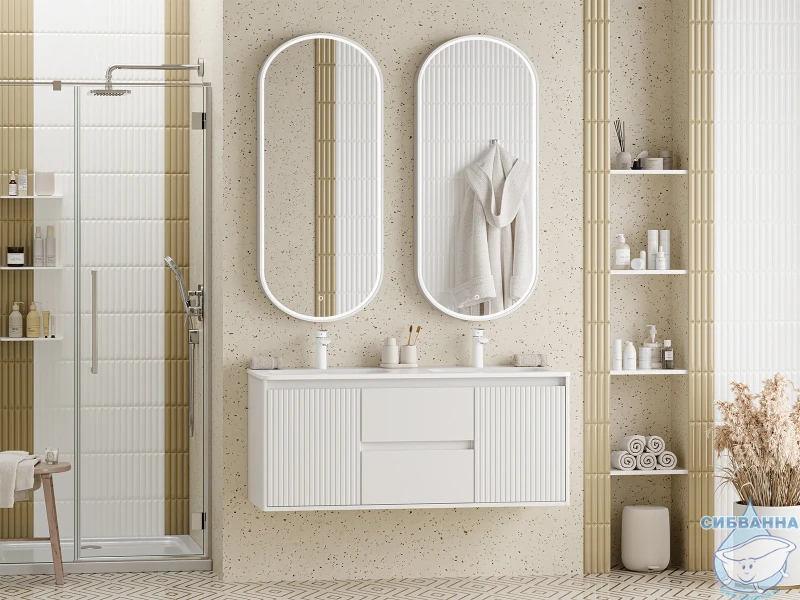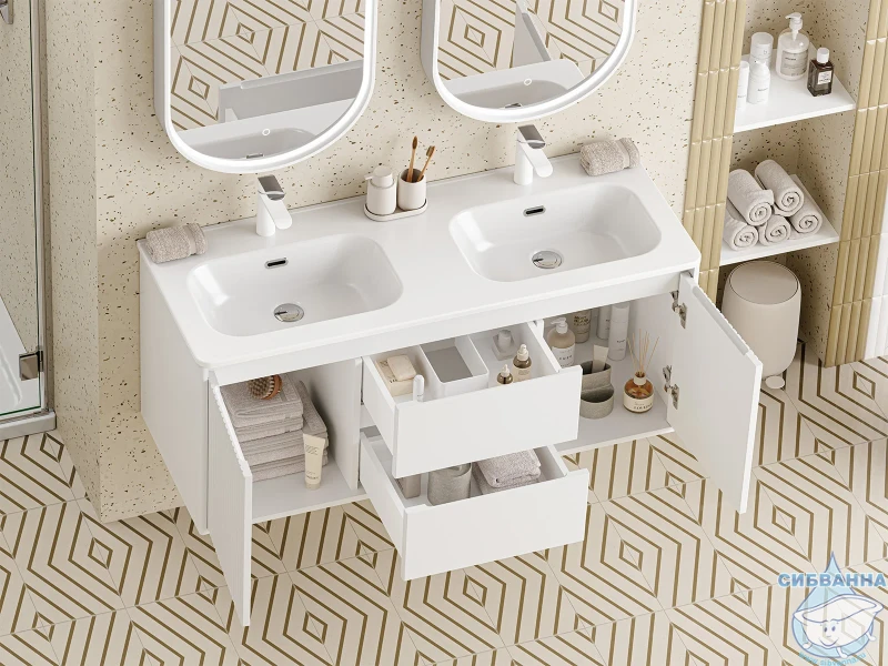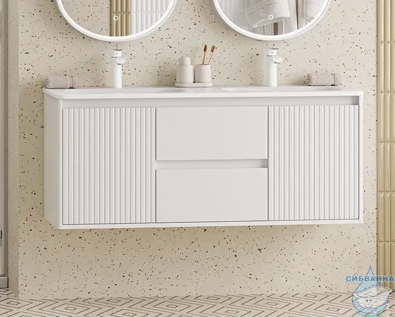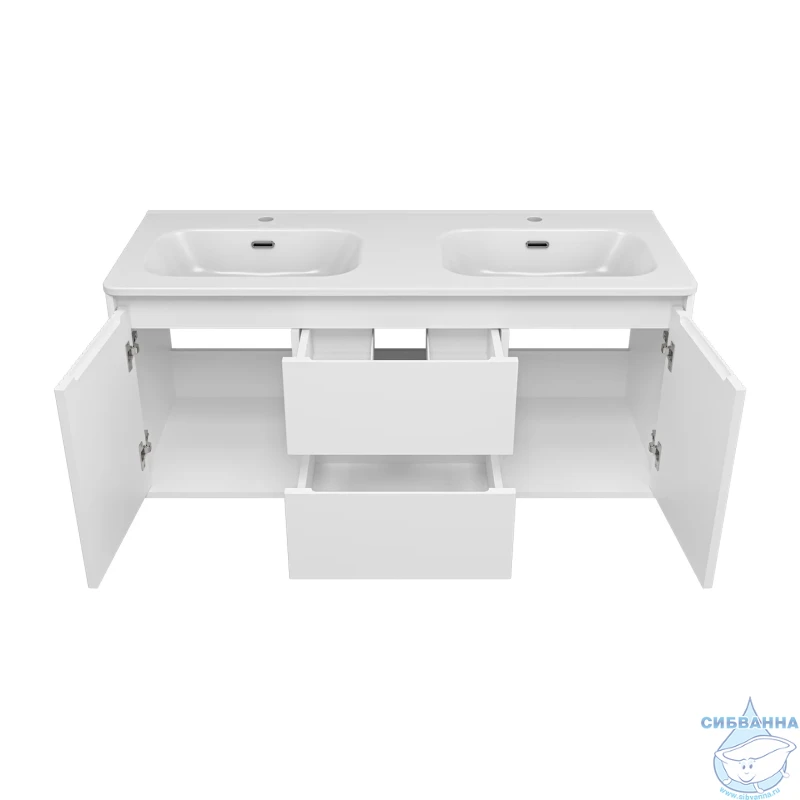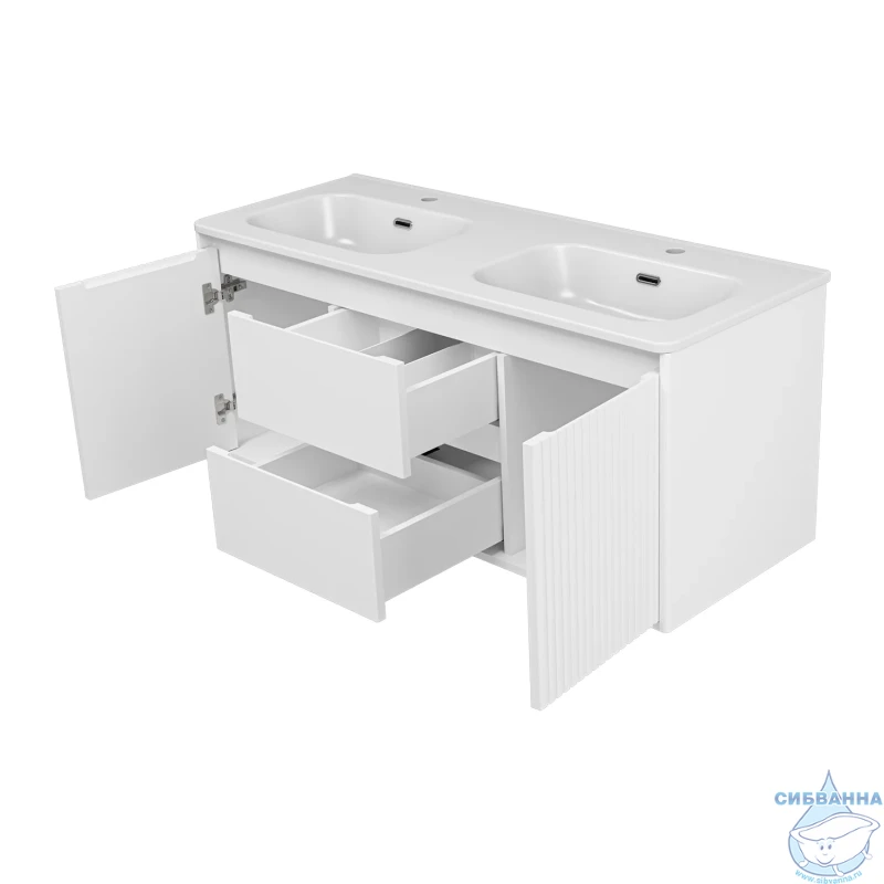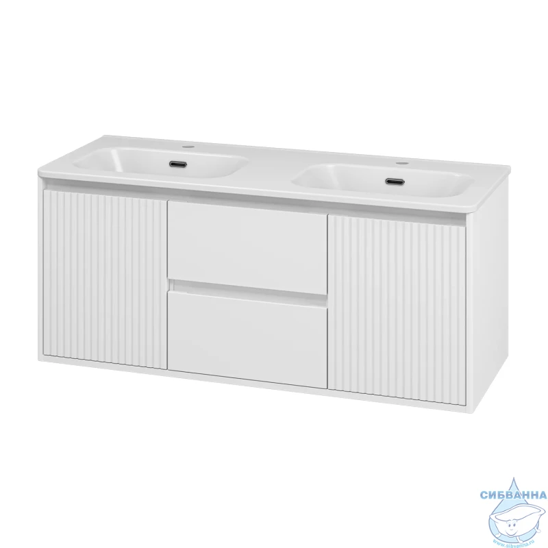 В комплекте с тумбой идёт раковина ONDA 120 см с двумя чашами