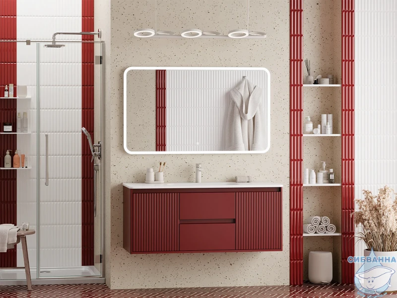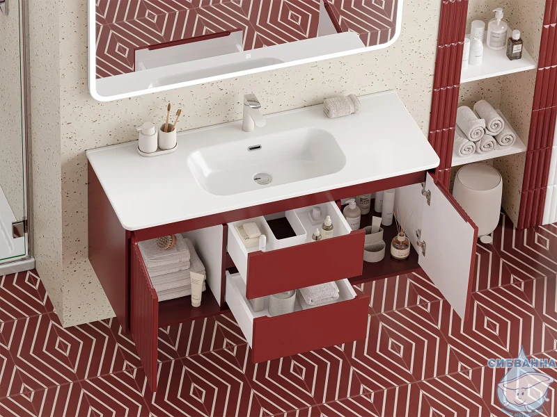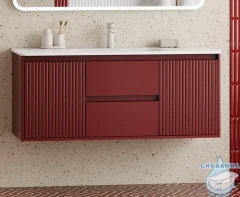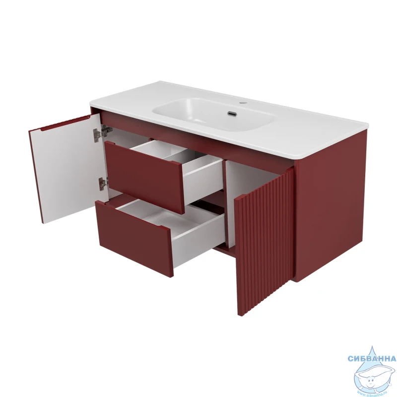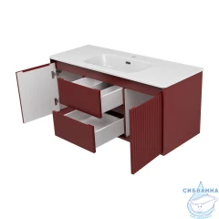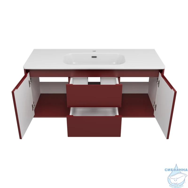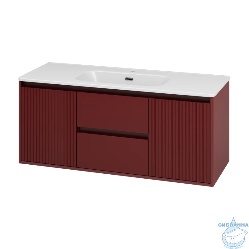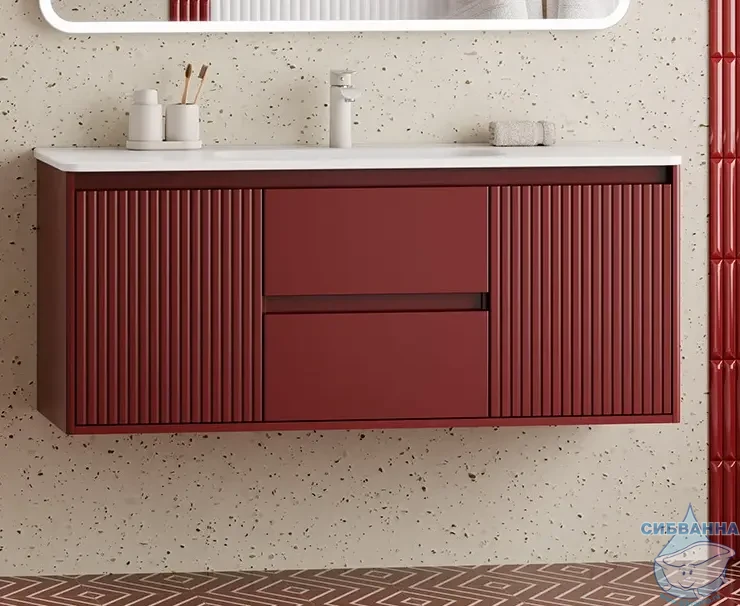 Подвесная тумба Brevita Wine 120 (бордовая) с раковиной Brevita Onda 120