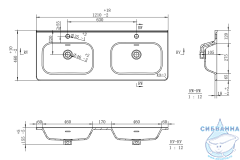 В комплекте с тумбой идёт раковина ONDA 120 см с двумя чашами