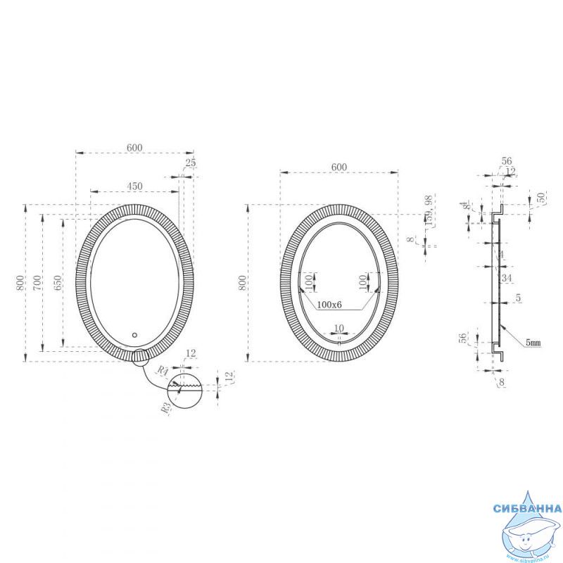 Габариты (ШхВхГ): 600х800х56 мм.