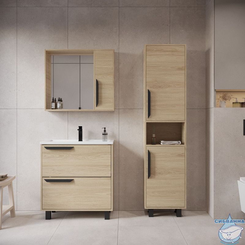 Зеркальный шкаф КЁЛЬН 60, правый, светлое дерево, VIANT. Комплектация: корпус, 1 ручка черный металл, крепления к стене.