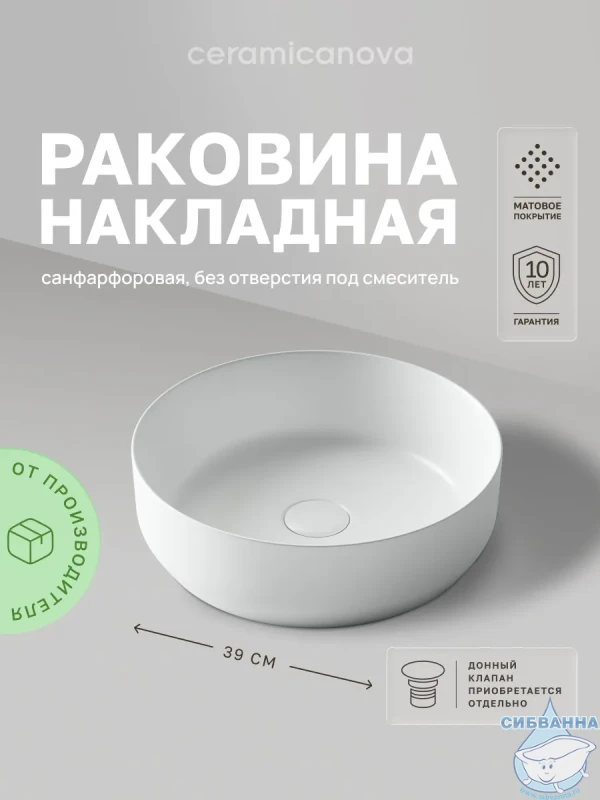 Раковина на столешницу 39 см Ceramicanova Element CN6022MW (белый матовый)