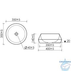 Раковина-чаша Ceramicanova Maya 40 CN12004. Характеристики: Цвет: белый. Материал: санфарфор. Размеры (ШхВхГ): 400x140x400 мм. Диаметр слива: 45 мм. Форма: круглая. Монтаж: накладной (на столешницу). В комплекте поставки: Раковина-чаша.