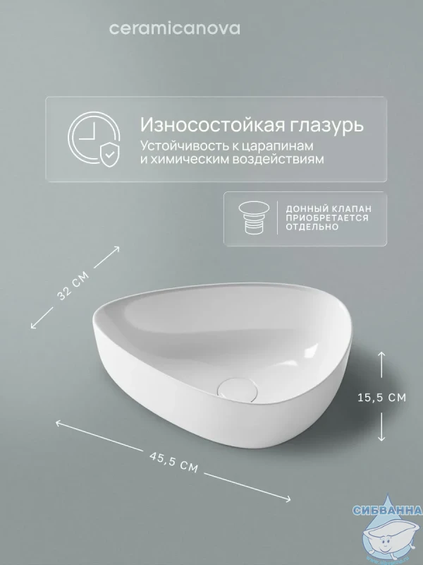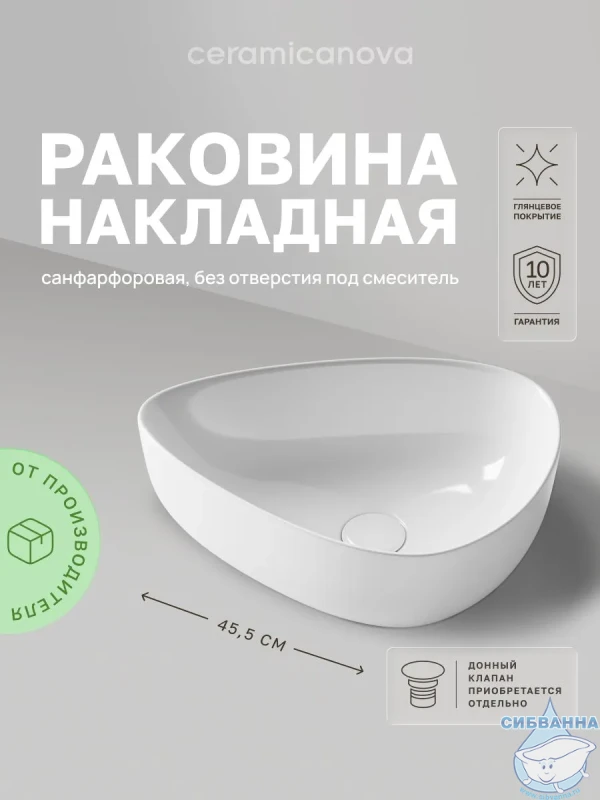Раковина-чаша Ceramicanova Element 45 CN5026 Подходит для ванных комнат различной планировки в современном стиле и отличается стильной и изящной формой. Технические характеристики: