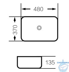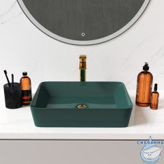 Раковина накладная на столешницу, без перелива, без отверстия под смеситель. Размер: 480 х 370 х 135 мм. Прямоугольная форма. Цвет: ОЛИВА/МАТОВАЯ Без сифона.
