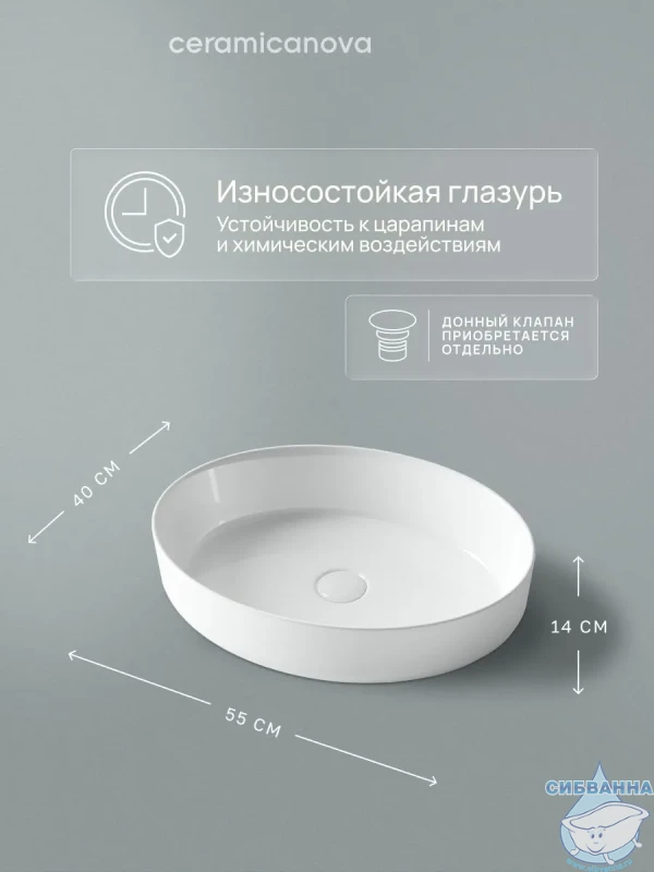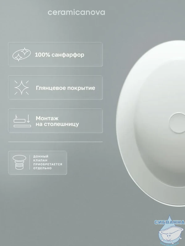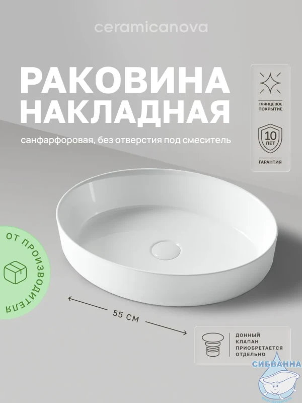 Раковина-чаша Ceramicanova Element 55 CN5002. Подходит для ванных комнат различной планировки в современном стиле и отличается стильной и изящной формой. Технические характеристики: