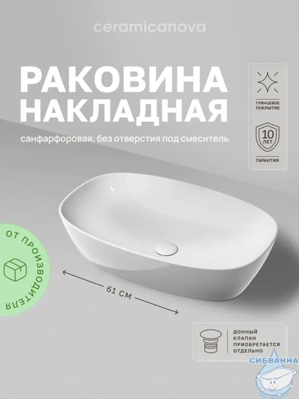 Раковина на столешницу 60 см Ceramicanova Element CN6049