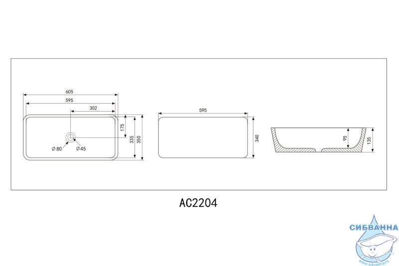 Раковина на столешницу 61 см ABBER Rechteck AC2204MG