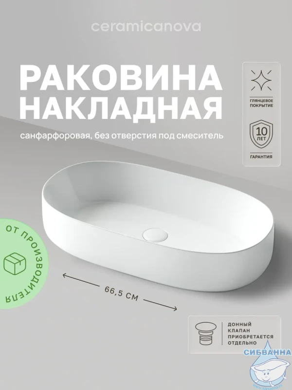 Раковина на столешницу 68 см Ceramicanova Element CN5022