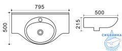 Раковина подвесная Azario 795x500x215, белый (TEO-80)