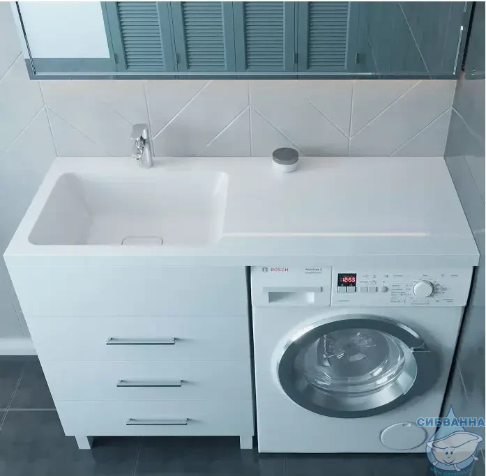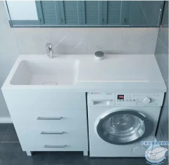 Подвесная раковина Madera Kamilla с местом под стиральную машину. Раковина для ванной комнаты для установки над стиральной машинкой. Элегантная декоративная крышка и глубокая чаша, образуют между собой прекрасный баланс дизайна и практичности. Верхний слой Гелькоута формирует декоративно защитное покрытие. Может эксплуатироваться как самостоятельное изделие, так и со встроенной мебелью.