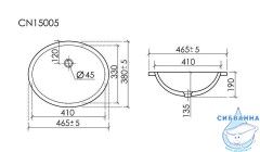 Раковина встраиваемая снизу Ceramicanova Era 465x380x190 мм, с отверстием слива - перелива, белый, арт.CN15005