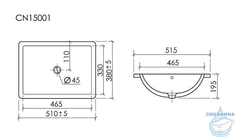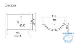 Раковина встраиваемая снизу Ceramicanova Era, с отверстием слива - перелива 515x380x195 мм, белый, арт.CN15001