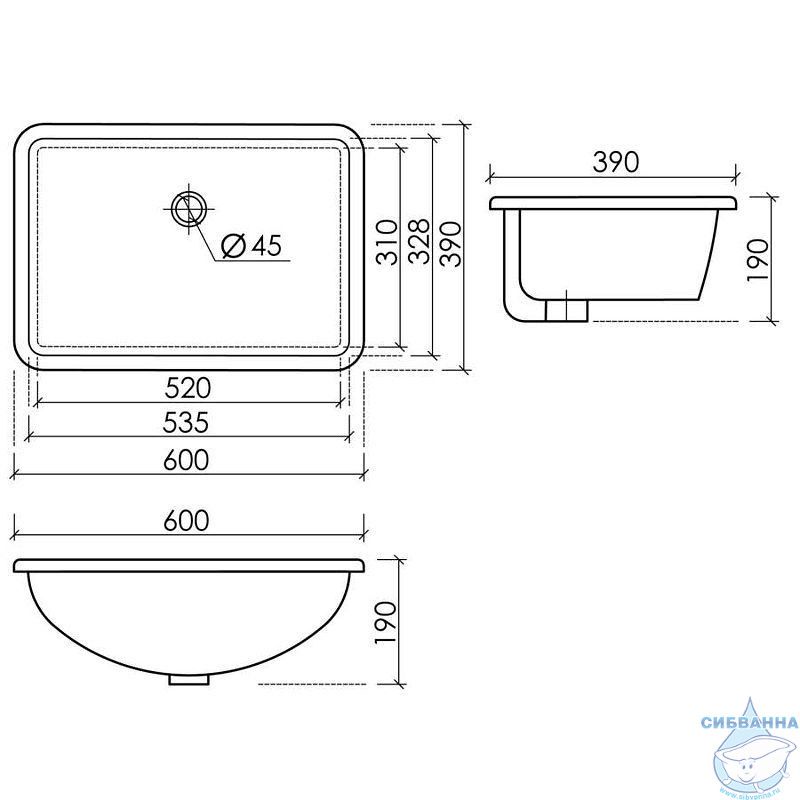 Размеры (ШхВхГ): 600х190х390 мм.