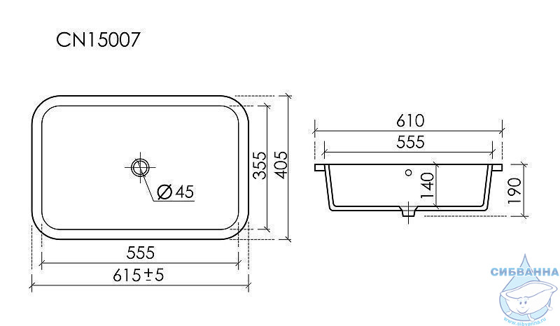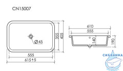 Раковина встраиваемая снизу Ceramicanova Era, c отверстием слива - перелива, 610x405x190мм, белый, арт.CN15007