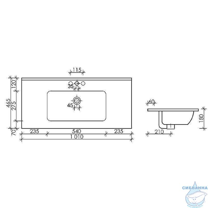 Одно отверстие под смеситель.