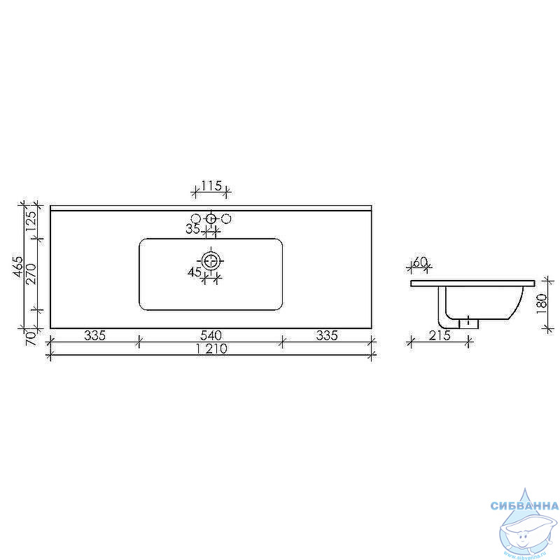 Раковина встраиваемая 121 см Ceramicanova Element CN7006