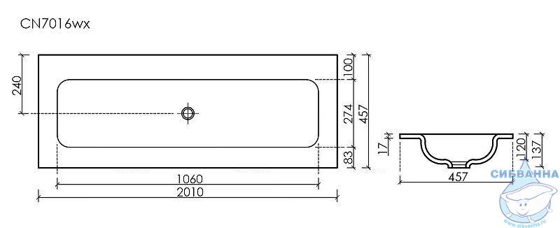 Раковина встраиваемая 121 см Ceramicanova Grace CN7016wx