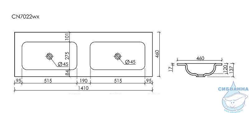 Раковина Ceramicanova Grace 140 CN7022 двойная. Характеристики: Материал: санфарфор. Размеры (ШхВхГ): 1410x137х460 мм. Отверстия под смеситель: без отверстий Диаметр слива: 45 мм. Монтаж: на тумбу. В комплекте поставки: Раковина.