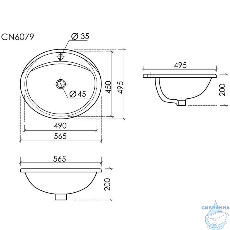 Раковина Ceramicanova Sun 57 CN6079. Характеристики:
