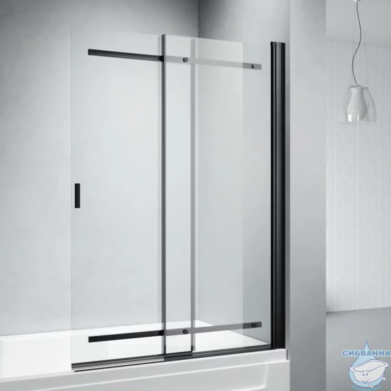 Шторка для ванны Veconi Palau 100x140 профиль черный, стекло прозрачное PL88B-100-01-C8