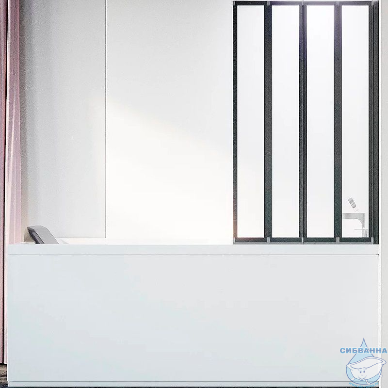 Шторка на ванну складная левая. Стекло закалённое безопасное 4 мм. Профиль анодированный алюминий. Стекло обработано Easy Clean.