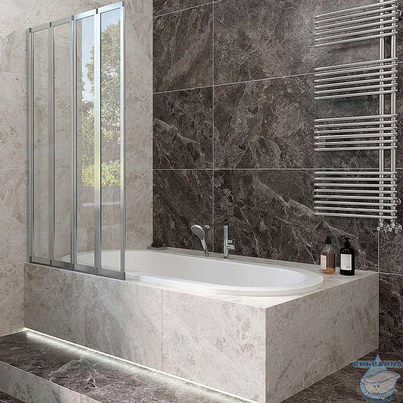 Оригинальная складная шторка для ванной с полотном из безопасного закаленного стекла. Двустороннее покрытие Easy Clean обеспечивает защиту поверхности от разводов, сокращает появление известкового налета и загрязнений. Анодированное покрытие профиля защищает его от коррозии и механических повреждений.