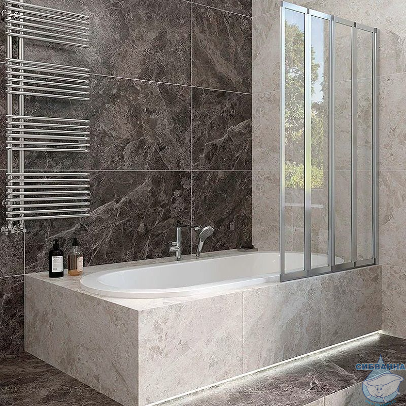 Оригинальная складная шторка для ванной с полотном из безопасного закаленного стекла. Двустороннее покрытие Easy Clean обеспечивает защиту поверхности от разводов, сокращает появление известкового налета и загрязнений. Анодированное покрытие профиля защищает его от коррозии и механических повреждений.