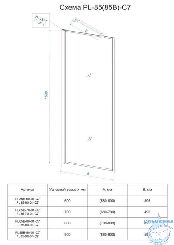 Шторка для ванны Veconi Palau 80x150 профиль хром, стекло прозрачное PL85-80-01-C7