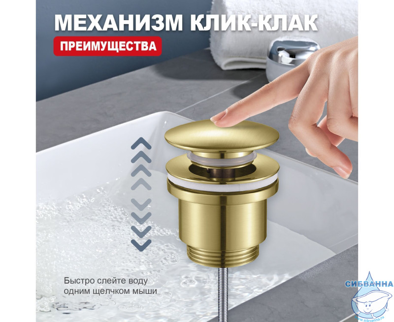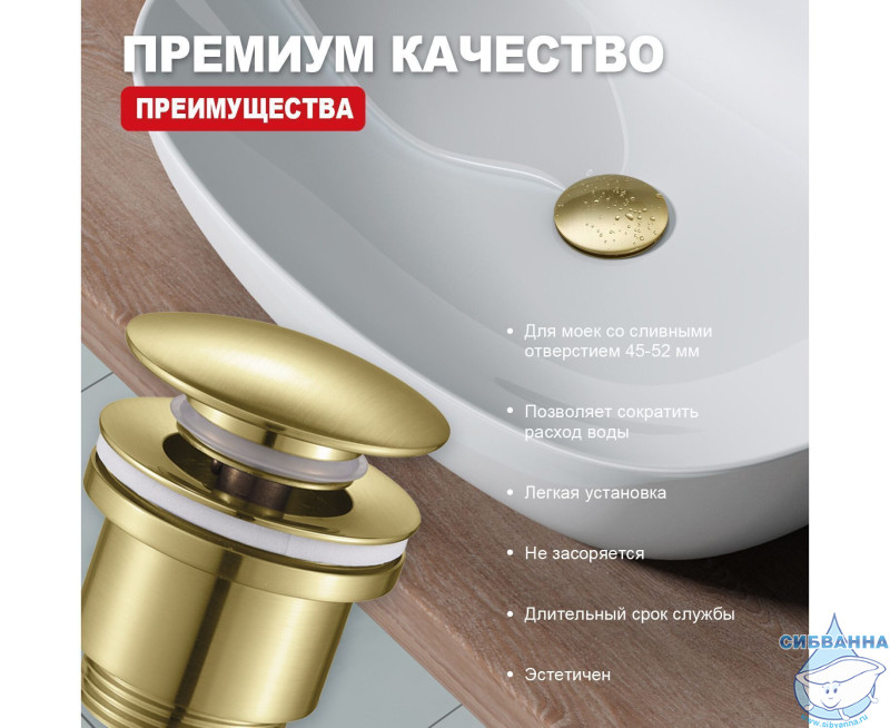Донный клапан для раковины Raglo R600.01.03 (сатин золотой)