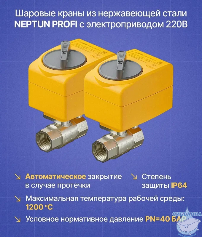 - Кран шаровый с электроприводом Neptun Profi 220В - 2 шт